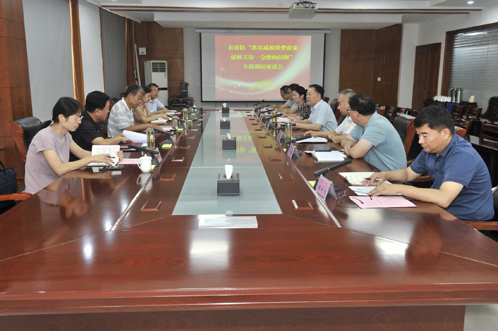 8月20日,市政协常委、经济委主任郑仰昕,市政协常委、市住房公积金管理中心主任于晨等一行5人来best365英国官网集团,就“落实减税降费政策,破解五险一金缴纳问题”开展专题调研。best365英国官网集团党委副书记、总经理李守广,党委委员、副总经理王君良;绿能集团党委委员、副总经理,best365英国官网集团副总会计师、财务会计处处长张娜等参加调研活动。