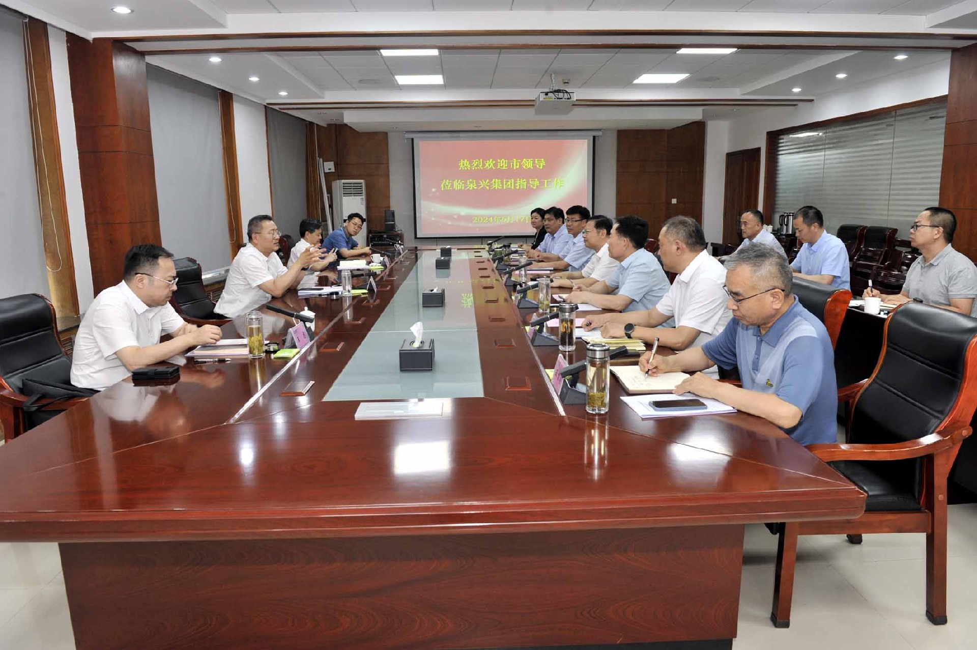 6月14日,best365英国官网集团绿能集团新能源产业发展座谈会在集团总部五楼会议室召开,集团党委书记、董事长张宗辉出席会议并讲话;集团党委副书记、总经理李守广主持会议。集团党委委员、副总经理高博,绿能集团党委委员、副总经理张娜;绿能集团区级合作国企晟玺集团、华邦集团、中汇集团、宏达公司主要负责人及分管负责人等参加会议