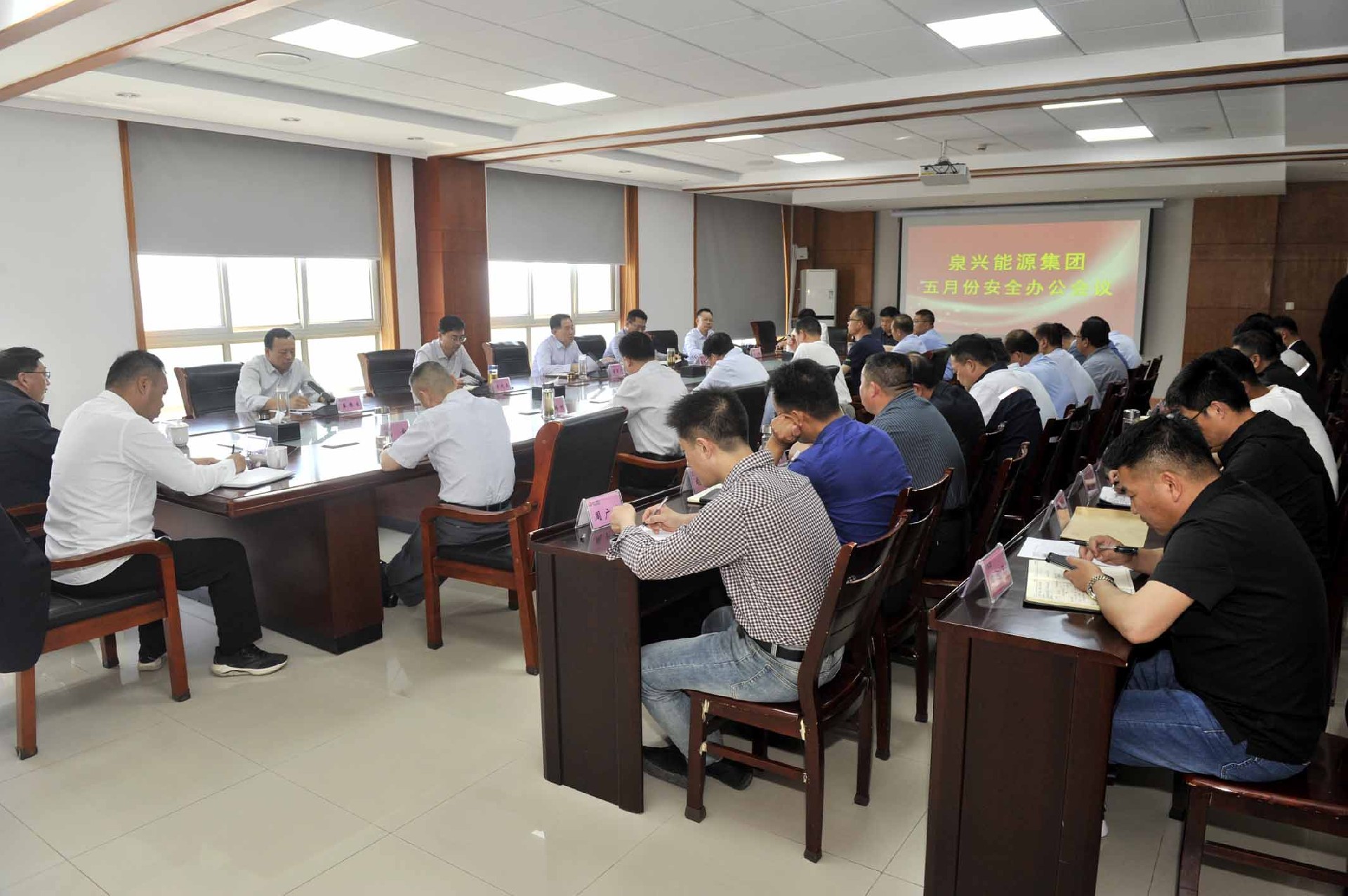 5月10日,集团五月份安全办公会议在总部五楼会议室召开,集团党委副书记、总经理李守广主持会议,安排部署下步工作。集团党委委员、副总经理、安全总监张加敏通报集团近期安全工作开展情况,安排布置下步安全工作。集团总工程师姜德生通报集团近期生产运行情况,安排布置下步生产工作。集团党委委员、工会主席李光玉,集团副